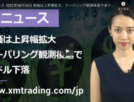 08月24日 株価は上昇幅拡大、テーパリング観測後退で米ドル下落